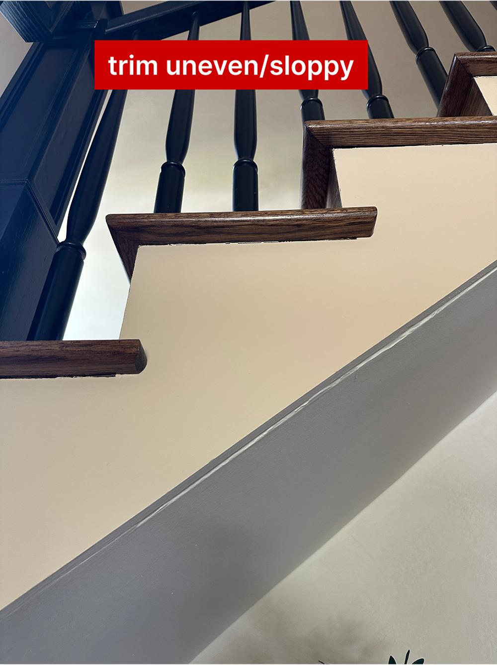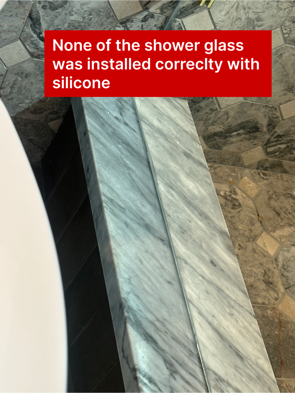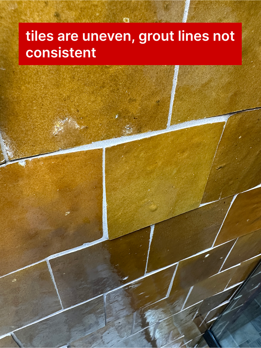 Tile: Grout lines were sloppy and uneven, tile work had to be ripped out and redone.
