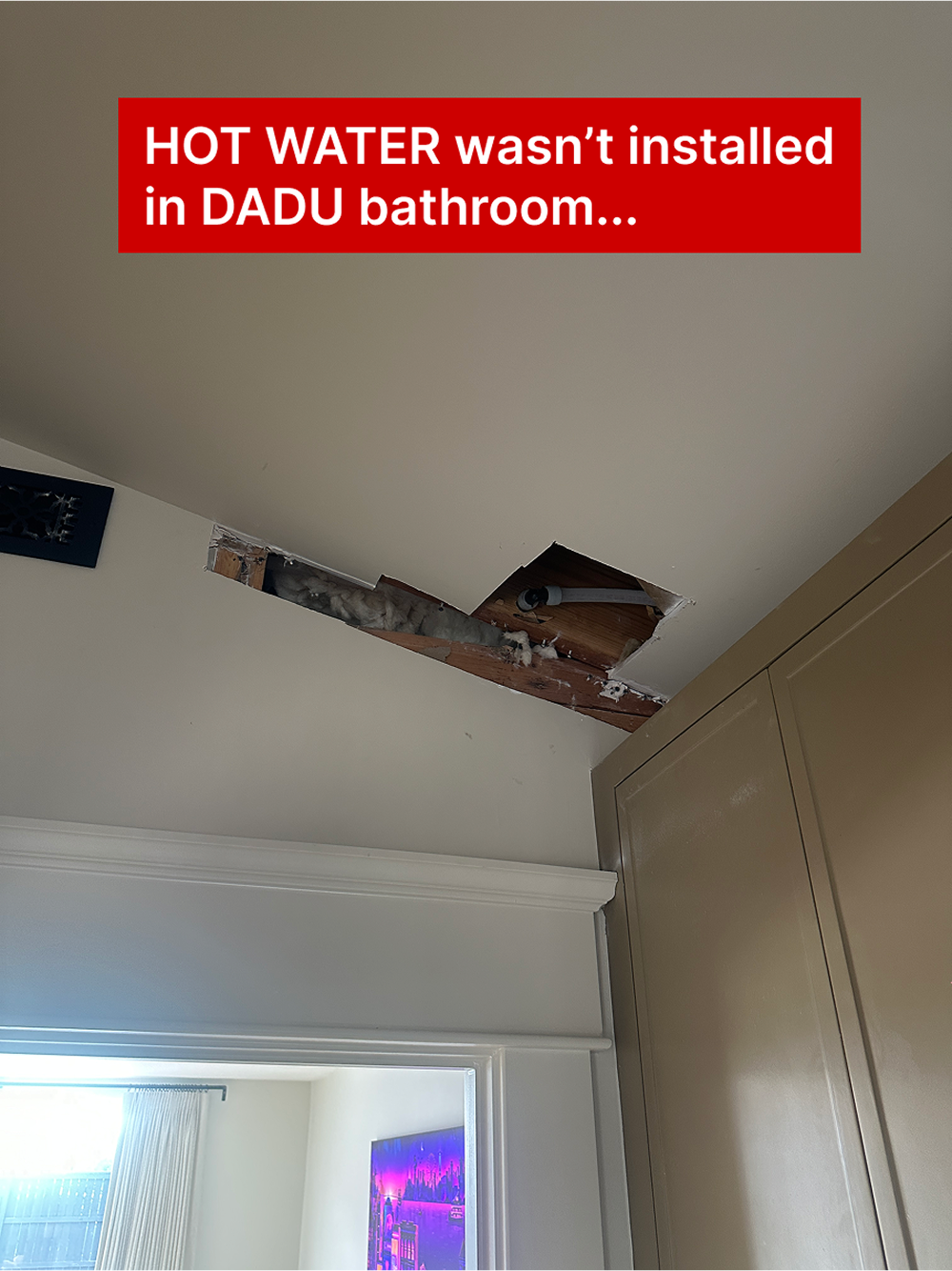 HVAC: The DADU system leaked, and the main system for the 2nd and 3rd floors was undersized and incapable of cooling the space.