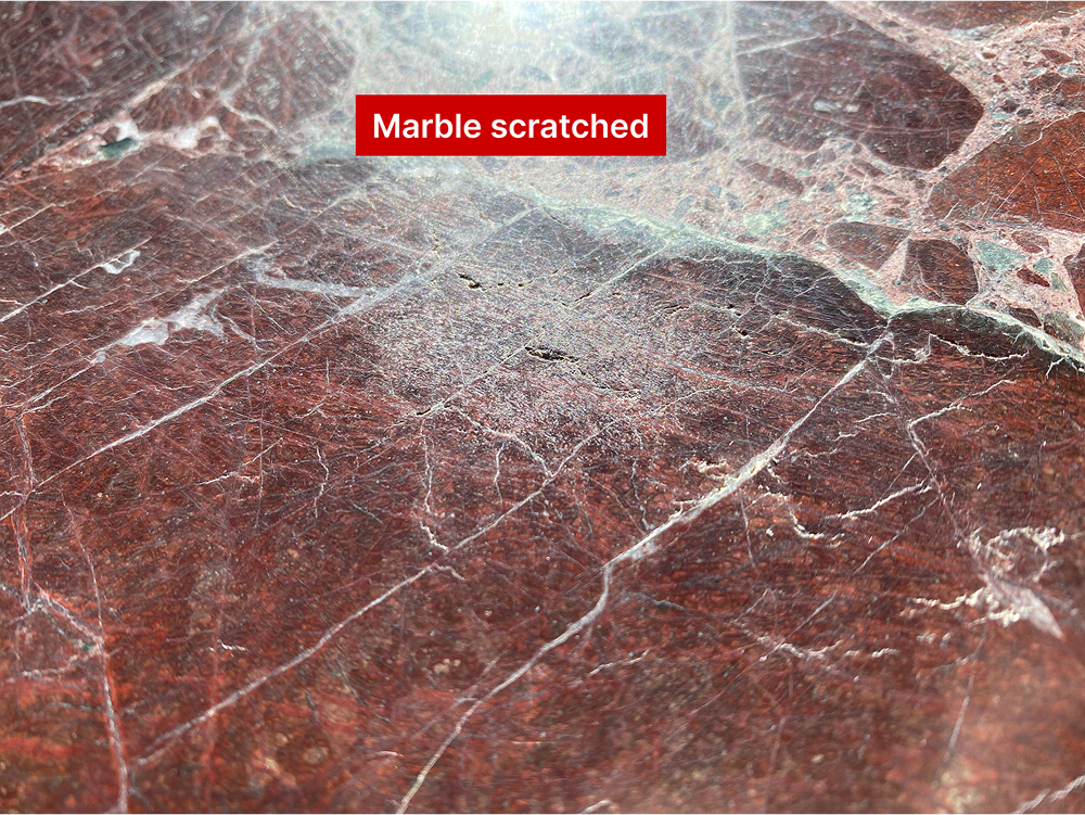 Marble and Stone: Surfaces were permanently damaged because they were not protected during construction.